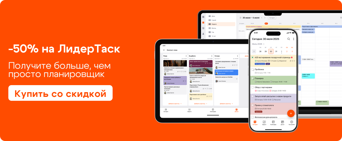 Успейте приобрести лицензию LeaderTask со скидкой 50%!