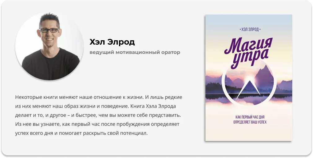 Книга описывает конкретные утренние ритуалы для улучшения личной продуктивности и эффективности. Автор постарается вас убедить, что ранний подъем и определенные действия значительно повышают производительность и эмоциональное благополучие. В книге вас ждет много ярких примеров и советов, которые помогут преодолеть сопротивление новым привычкам и создать утренние ритуалы, ведущие к личному и профессиональному успеху.