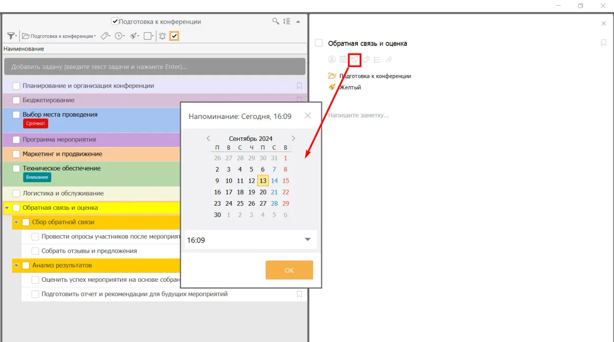**Шаг 3. Настройте напоминания и уведомления **так, чтобы они не отвлекали от текущей работы, но при этом не позволяли забыть о важных заданиях. Например, устанавливайте время за 15 минут до окончания дела или начала перерыва на отдых.