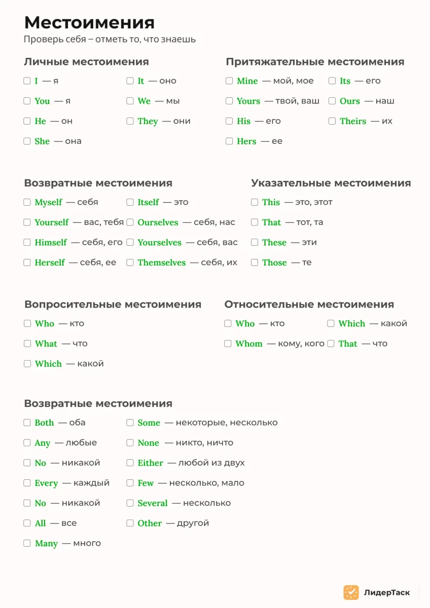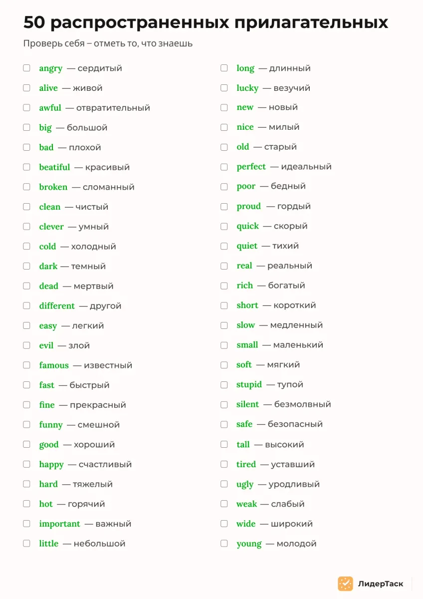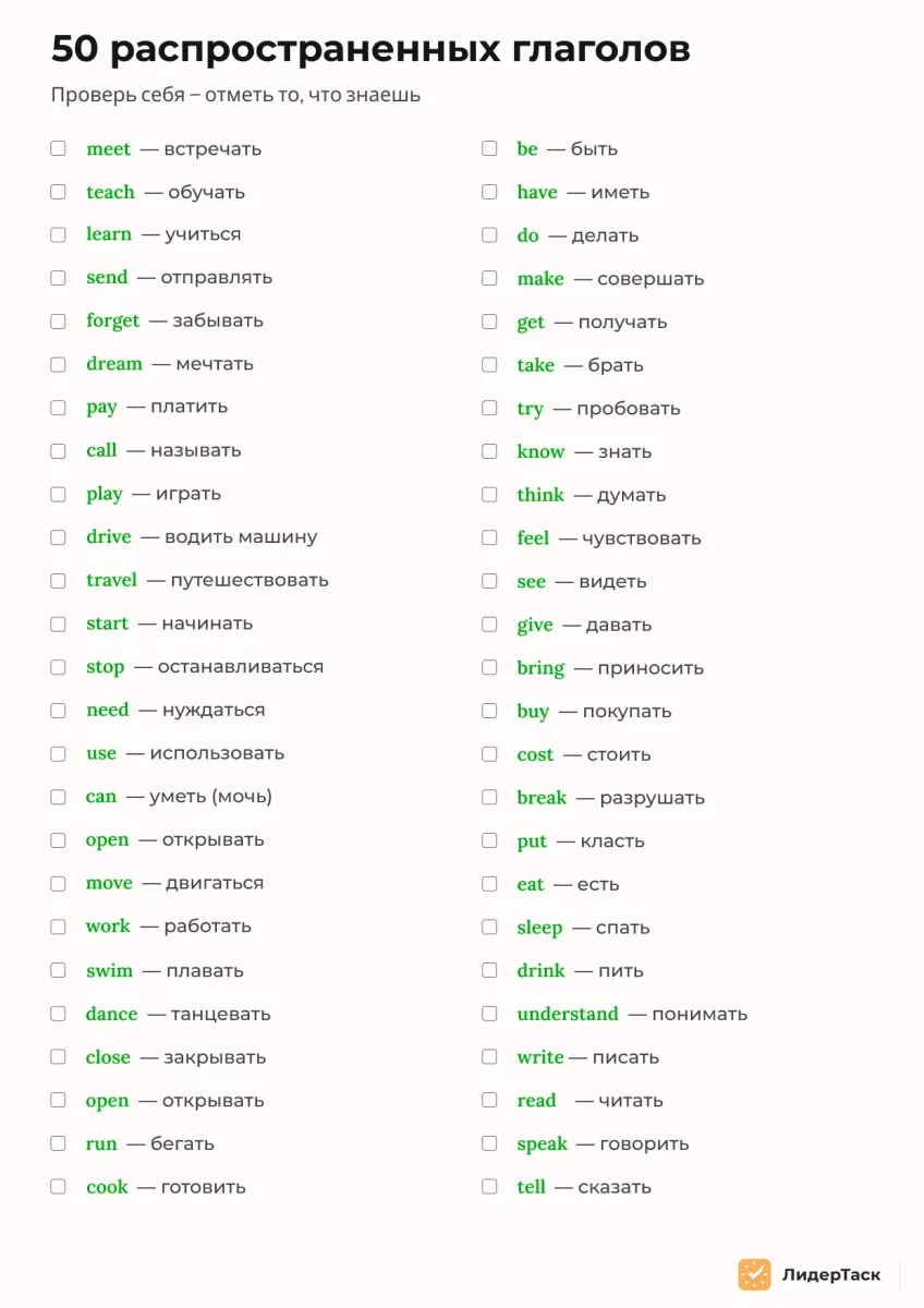 Знание английского языка является полезным навыком для профессионального и личного роста, будь то работа, учеба, путешествия или просто желание расширить свой кругозор. Чек-листы позволяют упростить и структурировать процесс обучения языка, делая его более организованным и продуктивным.