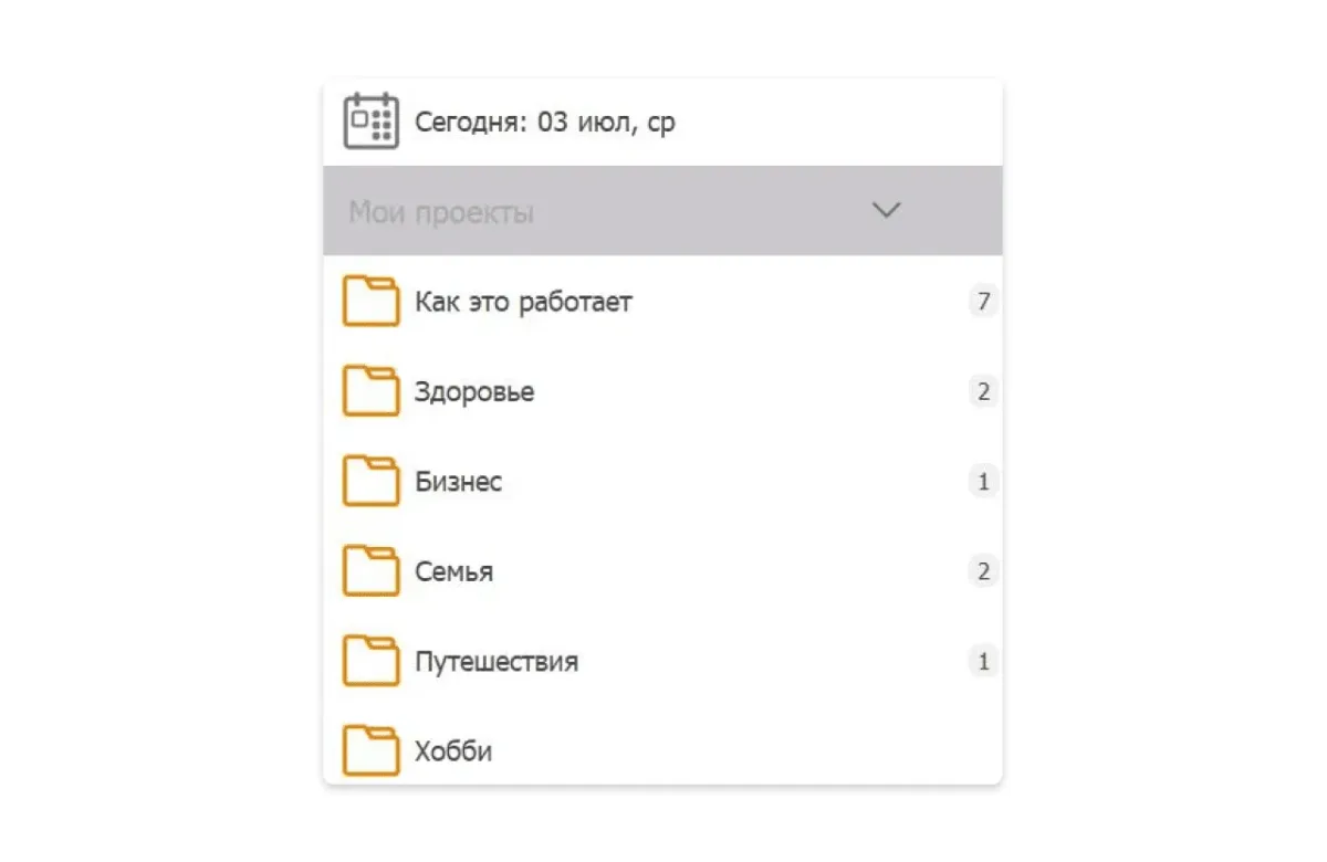 В ЛидерТаск можно записать задачу в один из проектов: здоровье, бизнес, семья, путешествия, хобби. Если нужного проекта нет — просто добавьте новый.