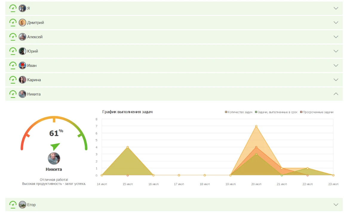 - Анализировать эффективность. Оценивать, насколько продуктивно работает команда.