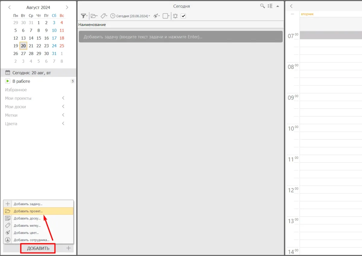 - Зайдите в свой аккаунт ЛидерТаск и нажмите кнопку «Добавить проект».
