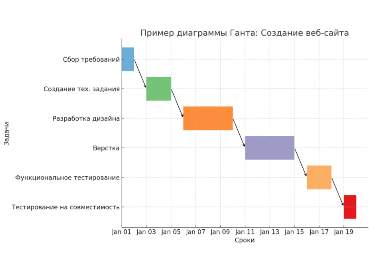 Неопределенность в сроках: диаграмма позволяет четко видеть, когда должны быть выполнены задачи и какие из них требуют больше времени, а какие — меньше. Это помогает избежать путаницы с дедлайнами и рисков застрять на отдельных этапах.