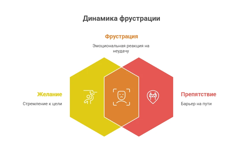 Фрустрация — это психическое и эмоциональное состояние, которое возникает, когда человек хочет достичь цели, удовлетворить потребности или реализовать замысел, но сталкивается с препятствиями.