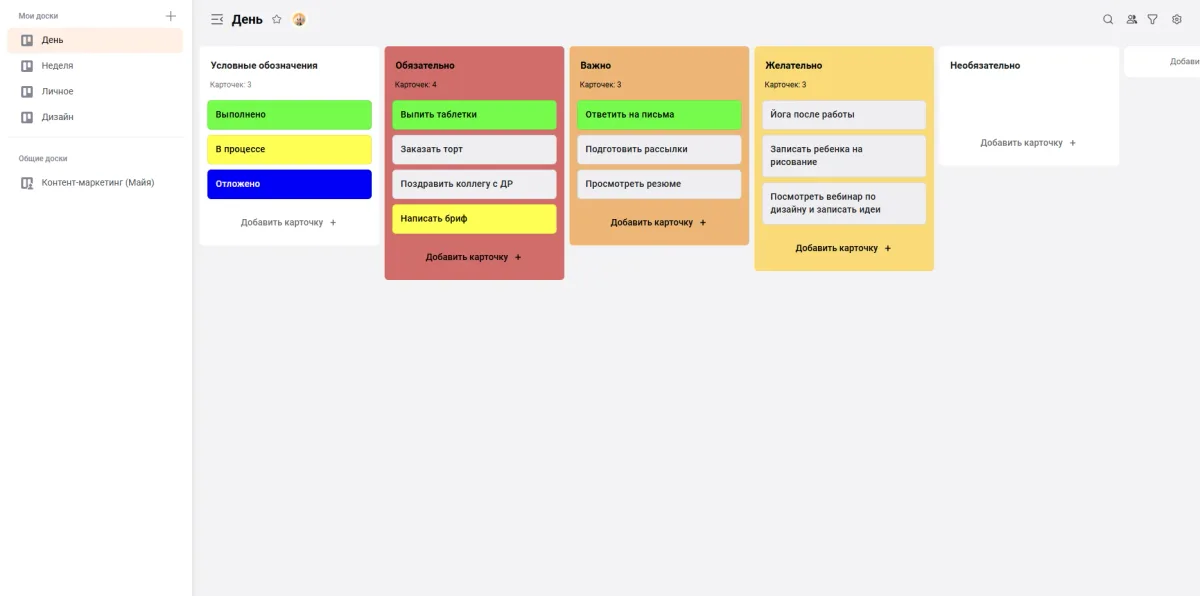 Если напряжение связано не с количеством дел, а с ощущением, что работа «застряла», полезно перейти в формат канбан-доски.