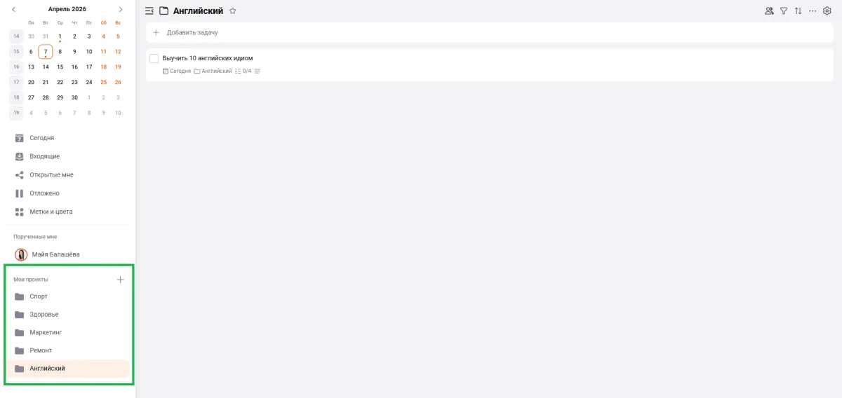 Когда все дела лежат одним списком, любая нагрузка кажется бесконечной. Проекты в ЛидерТаске помогают не смешивать разные потоки работы и собирать связанные задачи в одном пространстве: например, отдельно личные дела, отдельно рабочие дедлайны, отдельно сложный проект, который сейчас вызывает больше всего раздражения.