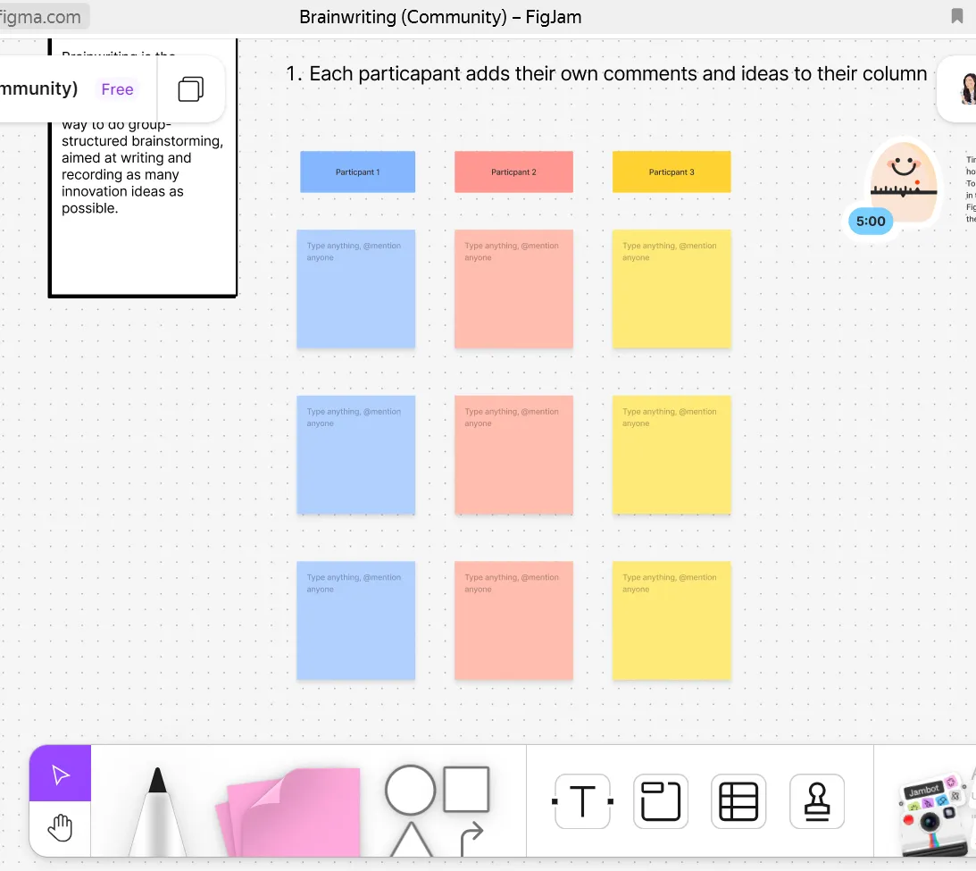 - Figma FigJam — удобный инструмент для командной работы, где можно использовать готовые шаблоны для мозгового штурма, ментальных карт и методики SCAMPER.