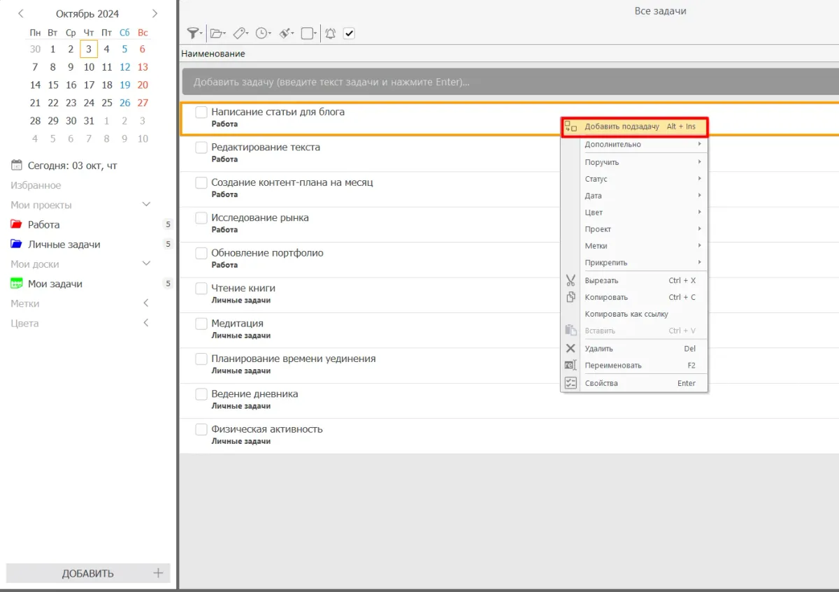 Создание проектов. Добавьте отдельные проекты для различных задач или тем. Это позволяет сосредоточиться на одной области и не путаться в множестве дел.