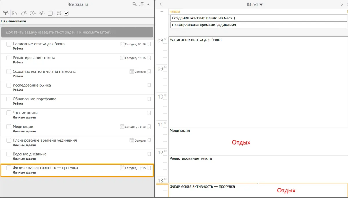 - Установите напоминания о времени выполнения задач и периодах отдыха.