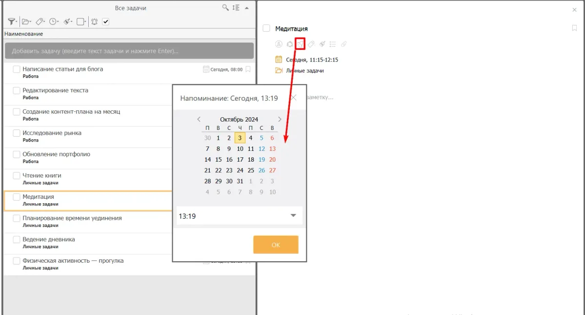 Интровертам важно иметь время для восстановления и самоанализа. Таск-менеджер предлагает встроенный календарь, который позволяет: