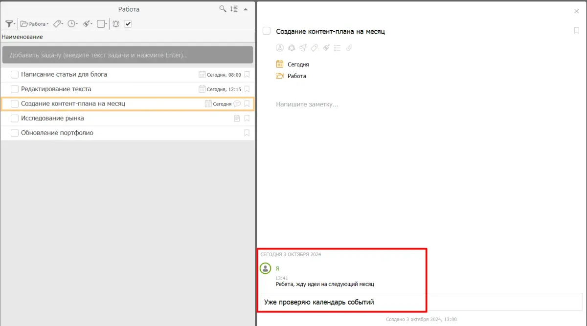 В таск-менеджере можно оставлять комментарии к задачам, обмениваться файлами и ссылками, что позволяет общаться с коллегами в удобное время. Это снижает стресс от необходимости мгновенно отвечать и позволяет сосредоточиться на качестве коммуникации.