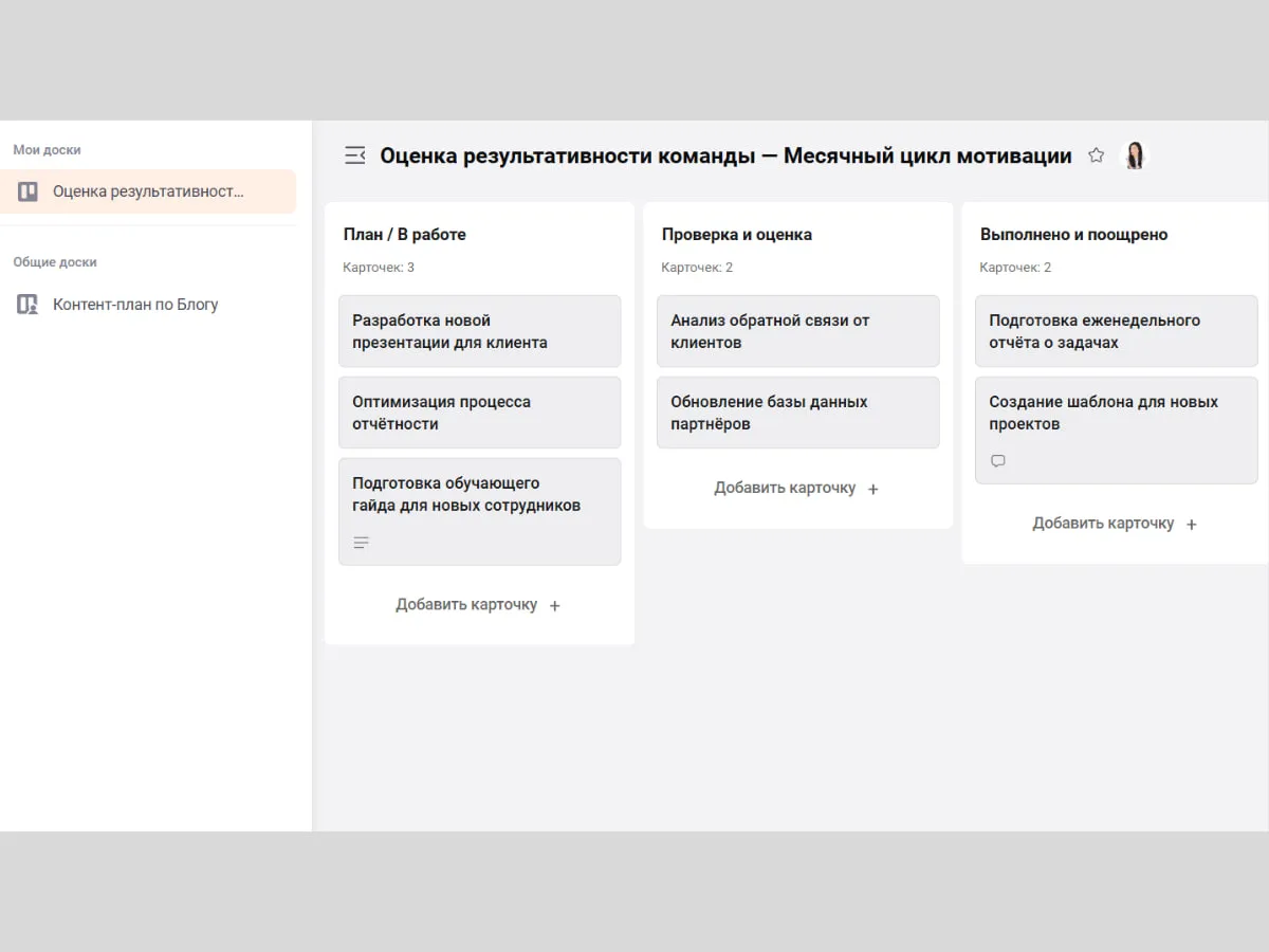 Шаблон канбан-доски для оценки результативности в ЛидерТаск