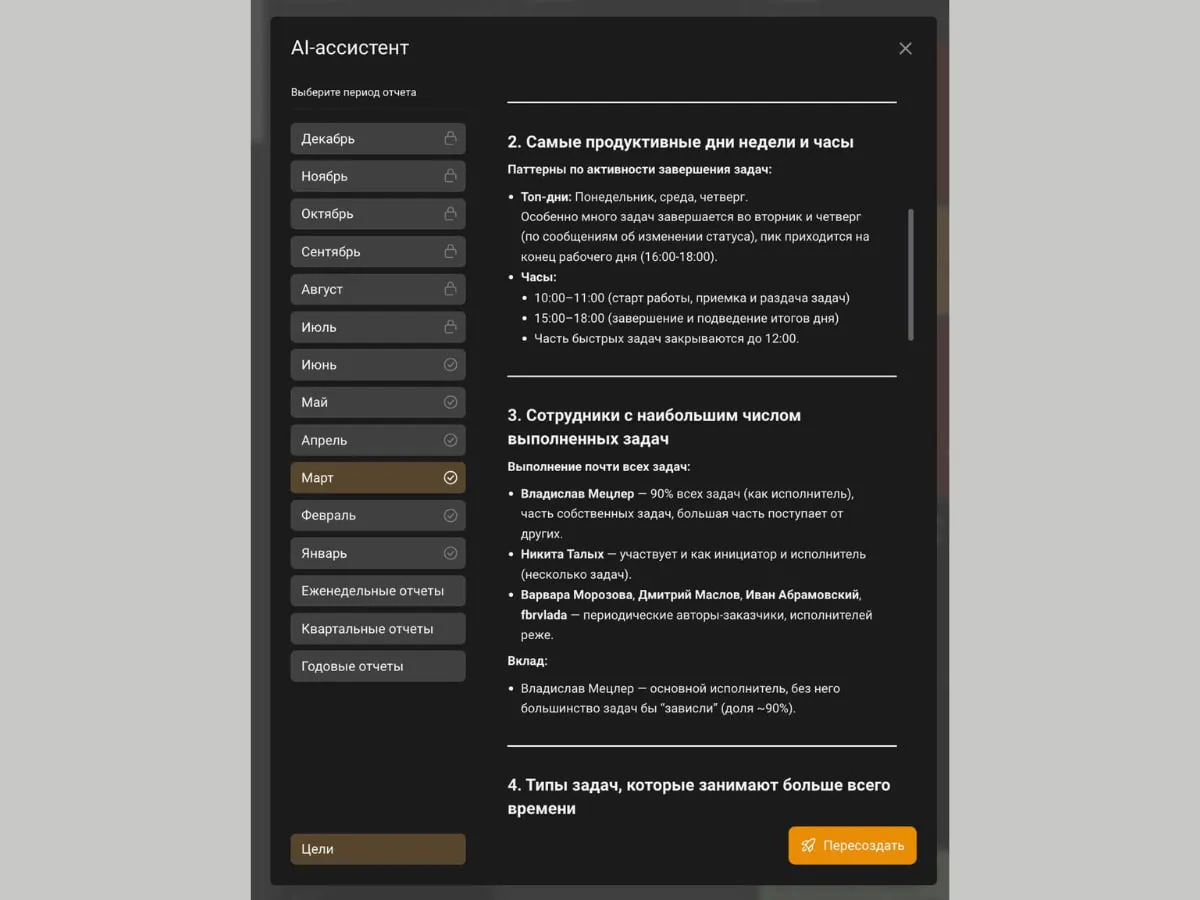 Отчет сгенерированный AI-ассистентом в ЛидерТаск