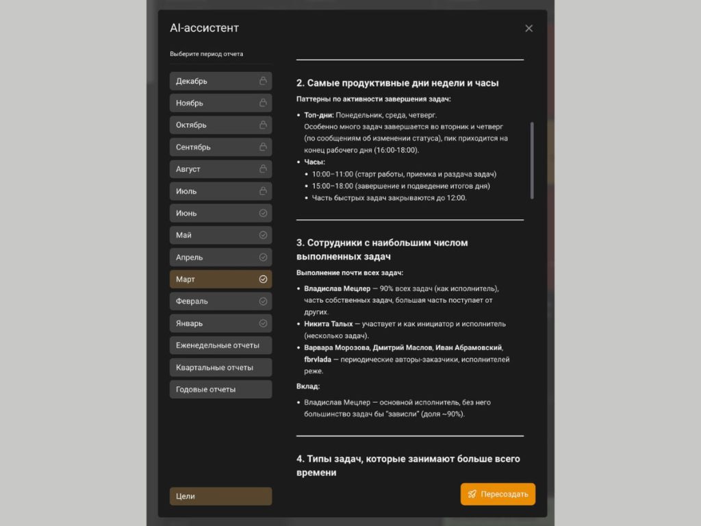 - Используйте отчёты — они покажут динамику работы каждого и всей команды.