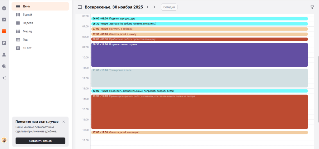 Планировщик может управлять не только рабочими встречами.