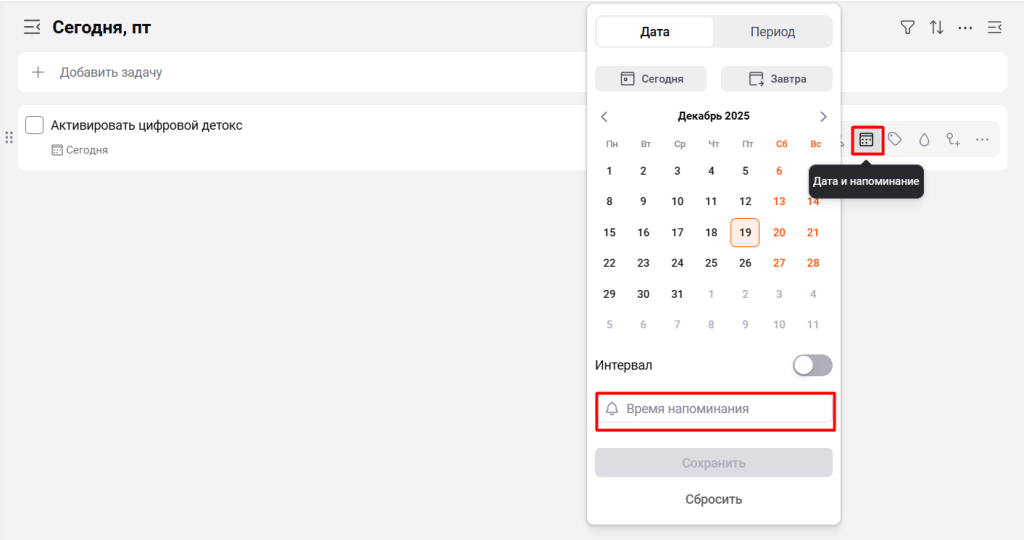 - Создайте повторяющуюся задачу «Подъем» на каждый день.