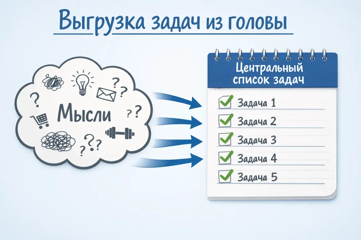 - Собрать все задачи в один список. Выгрузите из головы все дела, которые держите в памяти: рабочие вопросы, личные задачи, проекты, бытовые мелочи для семьи и детей — важно собрать все в единую систему.