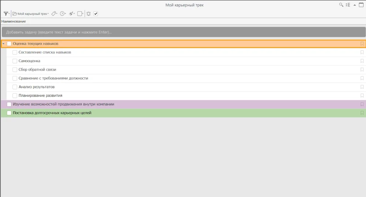 Давайте вернемся к Васе, менеджеру отдела кадров. И посмотрим, как он использовал ЛидерТаск для создания визуализации карьерного трека и отслеживания его прогресса.