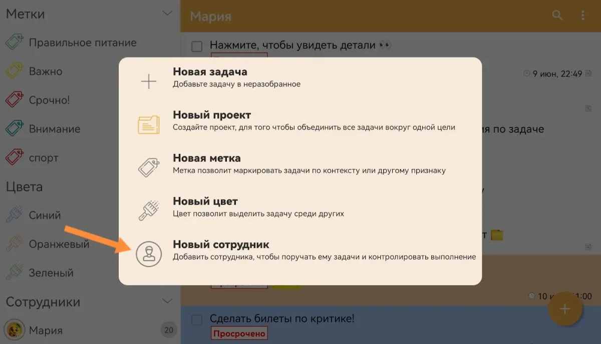 - Отслеживайте прогресс, анализируя архив выполненных задач.