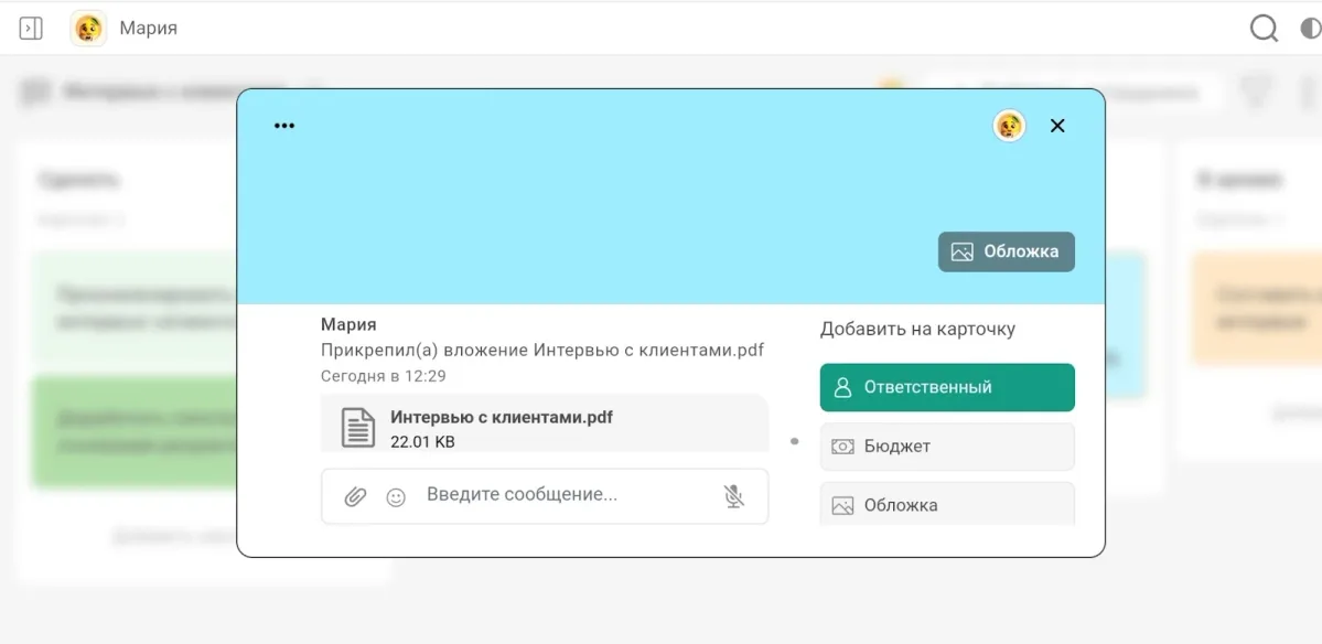 - Собирайте результаты исследований в одном месте. Например, после проведения интервью вы можете прикрепить к задаче таблицу, в которую запишете ответы клиентов.