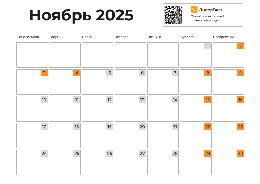 В ноябре 2025 года запланировано 19 рабочих дня и 11 выходных.