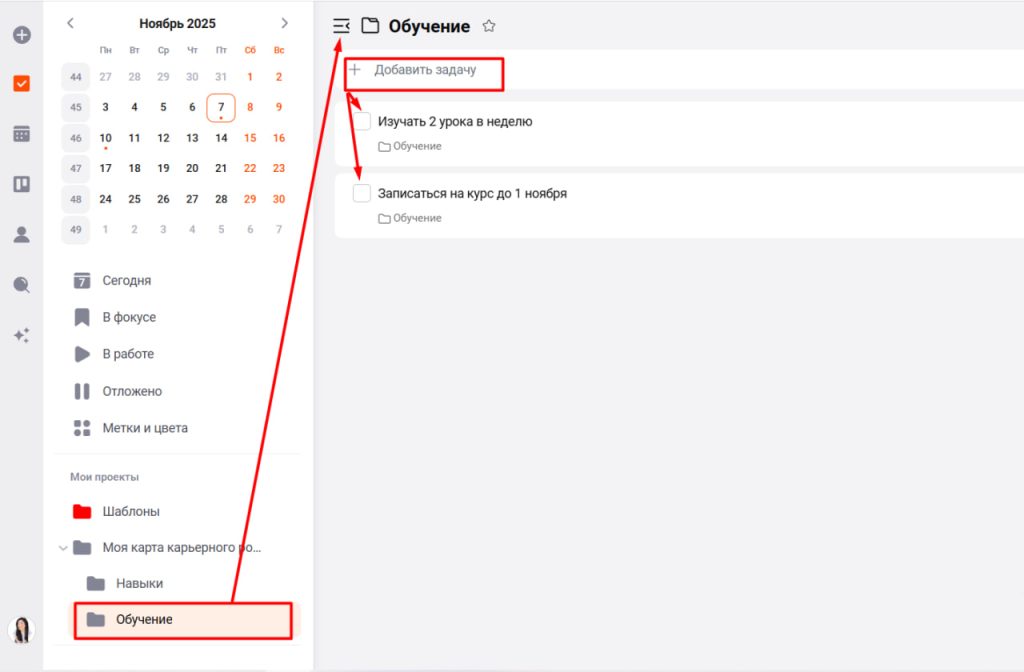 - Планируйте развитие как часть недели. Добавьте в календарь 2–4 задачи по обучению или саморазвитию.