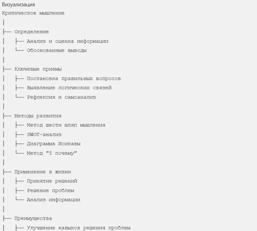 Графическое отображение информации, которое позволяет развивать критическое мышление через визуализацию процессов мышления.
