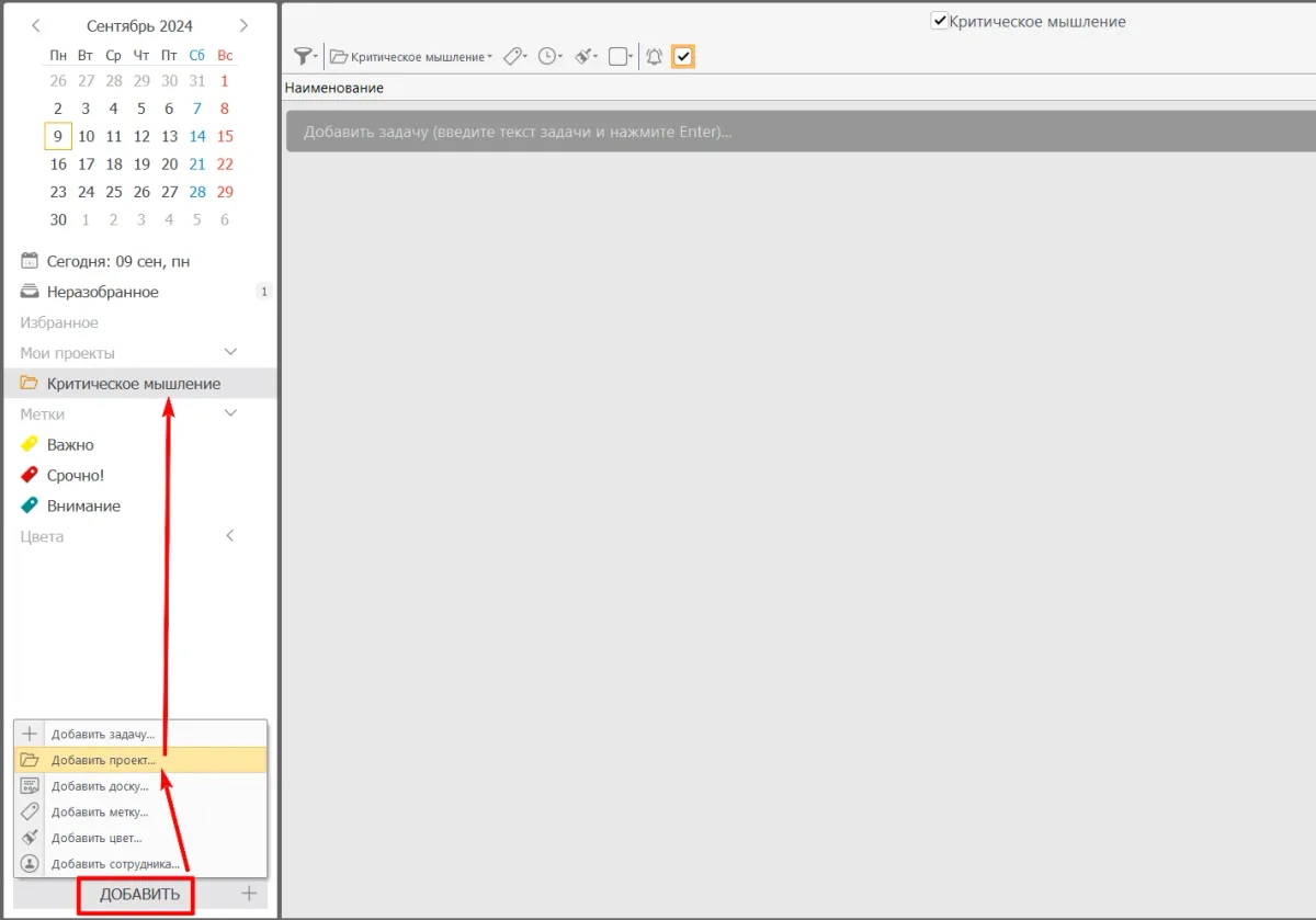 Назовите его, например, «Развитие аналитических навыков». Это даст пространство для организации задач и подзадач, связанных с применением различных методов критического мышления.