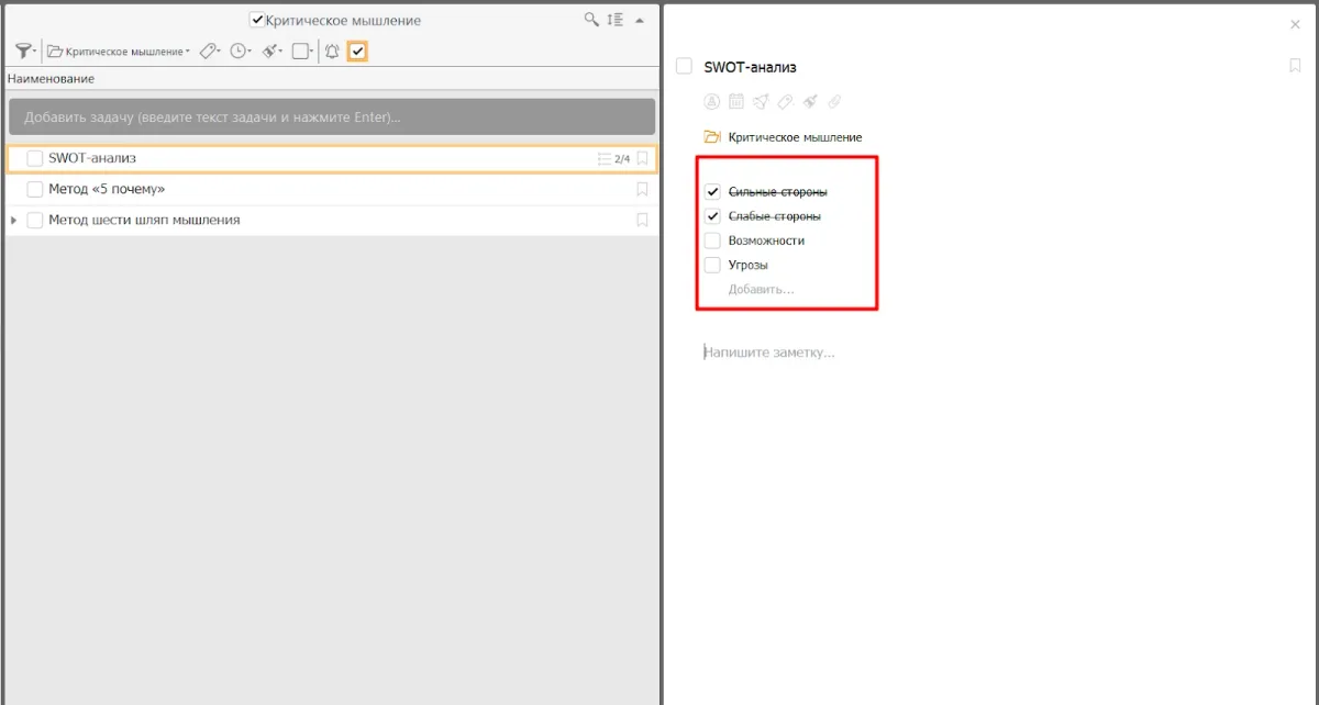 Итак, таск-менеджер — ваш личный тренер по критическому мышлению. Предлагает все необходимые инструменты для того, чтобы структурировать мысли, анализировать, принимать взвешенные решения и постоянно развиваться. Готовы выйти на новый уровень сознания? Начните применять приемы из статьи уже сегодня и улучшите способности справляться с любыми задачами быстрее и эффективнее.