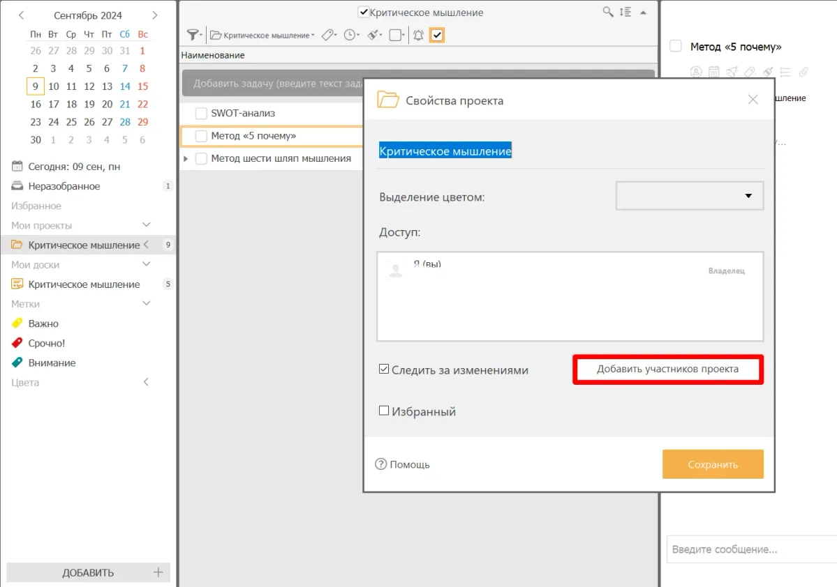 ЛидерТаск предлагает функции для совместной работы, что особенно полезно для групповых обсуждений и мозговых штурмов. Можете приглашать коллег к проектам, делиться задачами и обсуждать идеи в комментариях. Это способствует обмену мнениями, генерации новых идей и принятию коллективных решений.