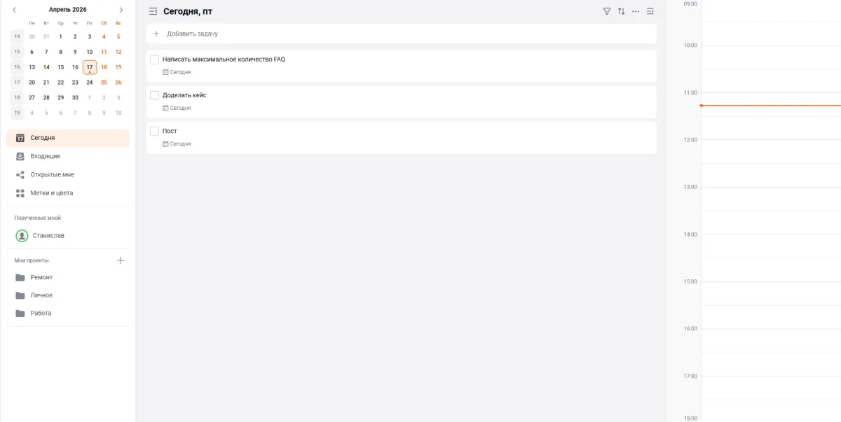 Сначала сервис помогает не забывать, не терять, не искать по чатам, не держать все в голове. Потом в ту же логику переезжают сотрудники, поручения, проекты и разговоры по задачам.