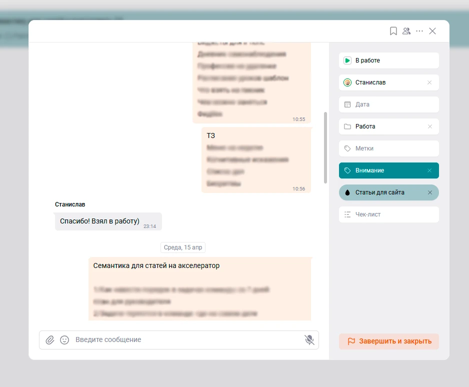 По задачам коммуникацию ведут в ЛидерТаске, все находится в одном месте, хотя сотрудники все равно время от времени пишут в мессенджерах. Но сами поручения туда уже не уходят.