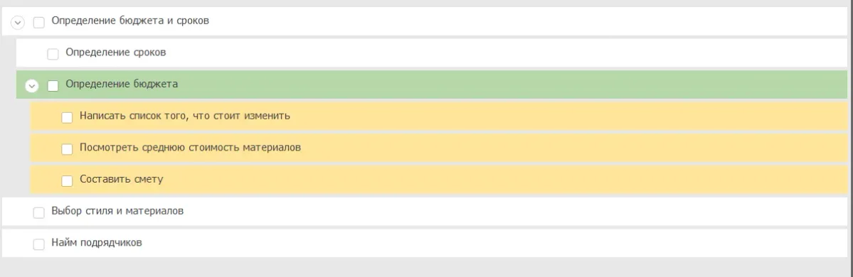 Ремонт можно разбить на несколько задач: определение сроков, бюджета, выбор стиля и материалов, найм подрядчиков и так далее. Вместо того, чтобы расписывать всё сразу, воспользуемся методом набегающей волны — распишем самую важную задачу. Например, это определение бюджета.