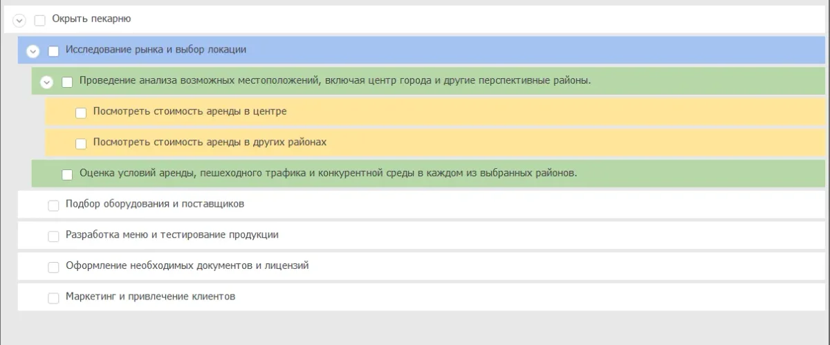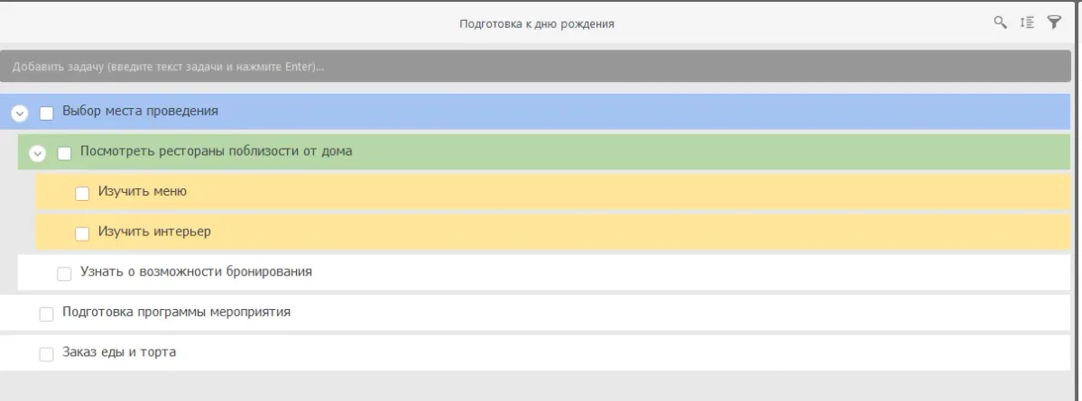 Детализируем задачи по выбору места проведения: посмотреть рестораны поблизости от дома и узнать о возможности бронирования. Каждый ресторан также стоит изучить: ознакомиться с меню и интерьером. Таким образом это будет выглядеть при планировании методом набегающей волны.
