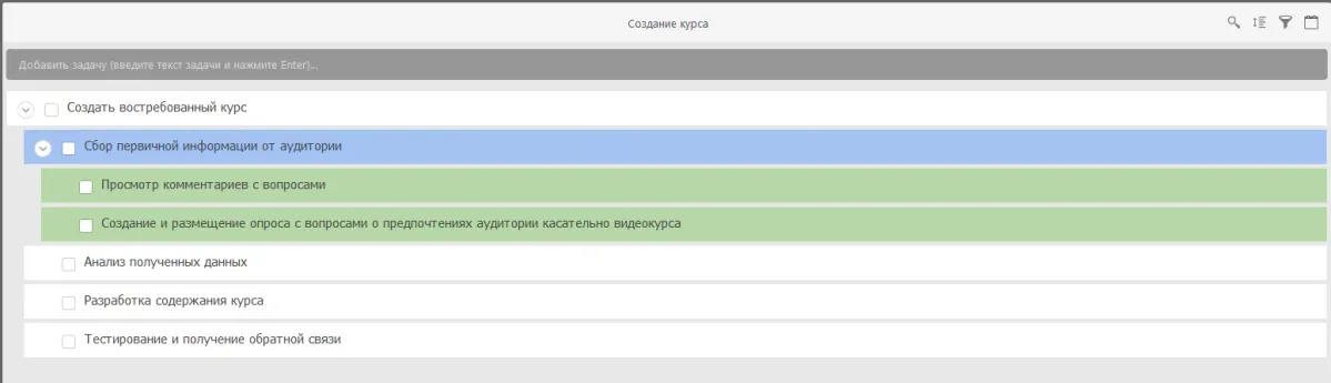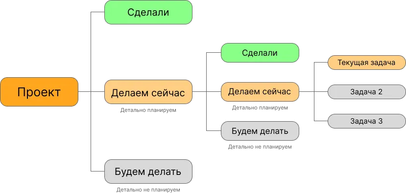 Каждая следующая крупная задача будет детализироваться по мере выполнения предыдущих. Это позволяет гибко реагировать на изменения и корректировать план по мере необходимости.
