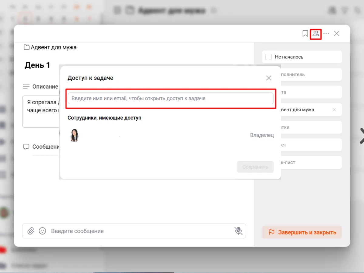 Включите совместный доступ и вот уже первое задание у вашего любимого человека.