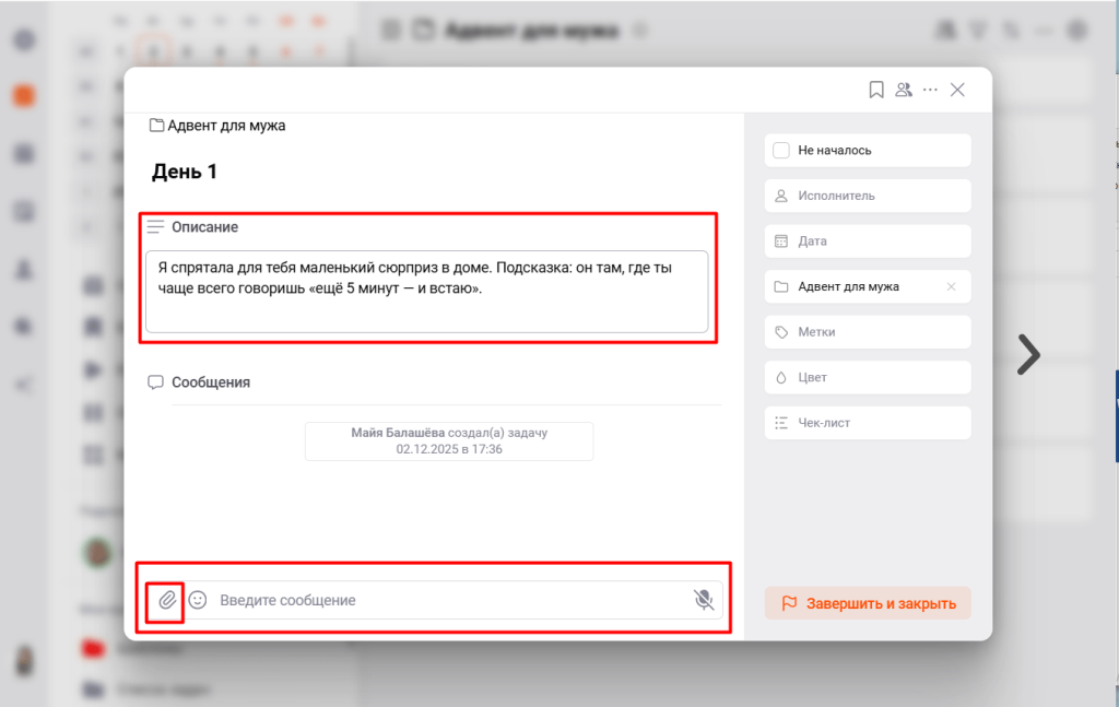 Подарки, задания, сообщения, фото, идеи — всё помещается в задачу.