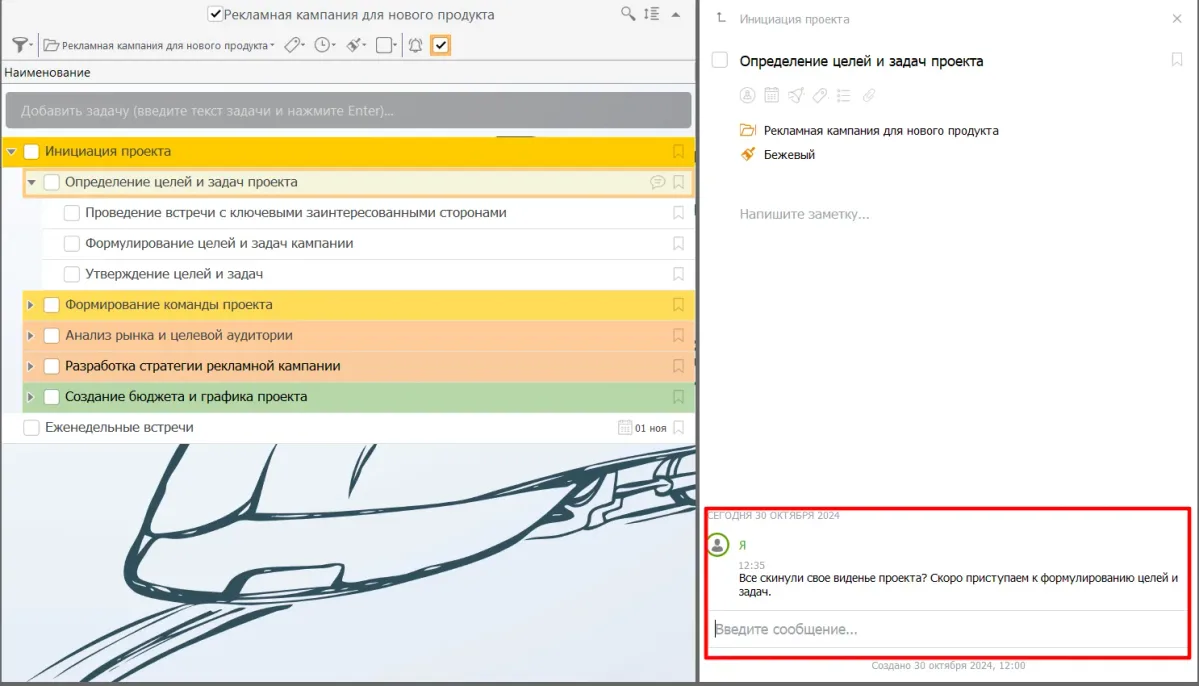 Шаг 7. Используйте встроенные чаты к задачам для обмена идеями и решения проблем. А так же после завершения каждого этапа собирайте отзывы от коллег о том, что сработало хорошо, а что улучшить.