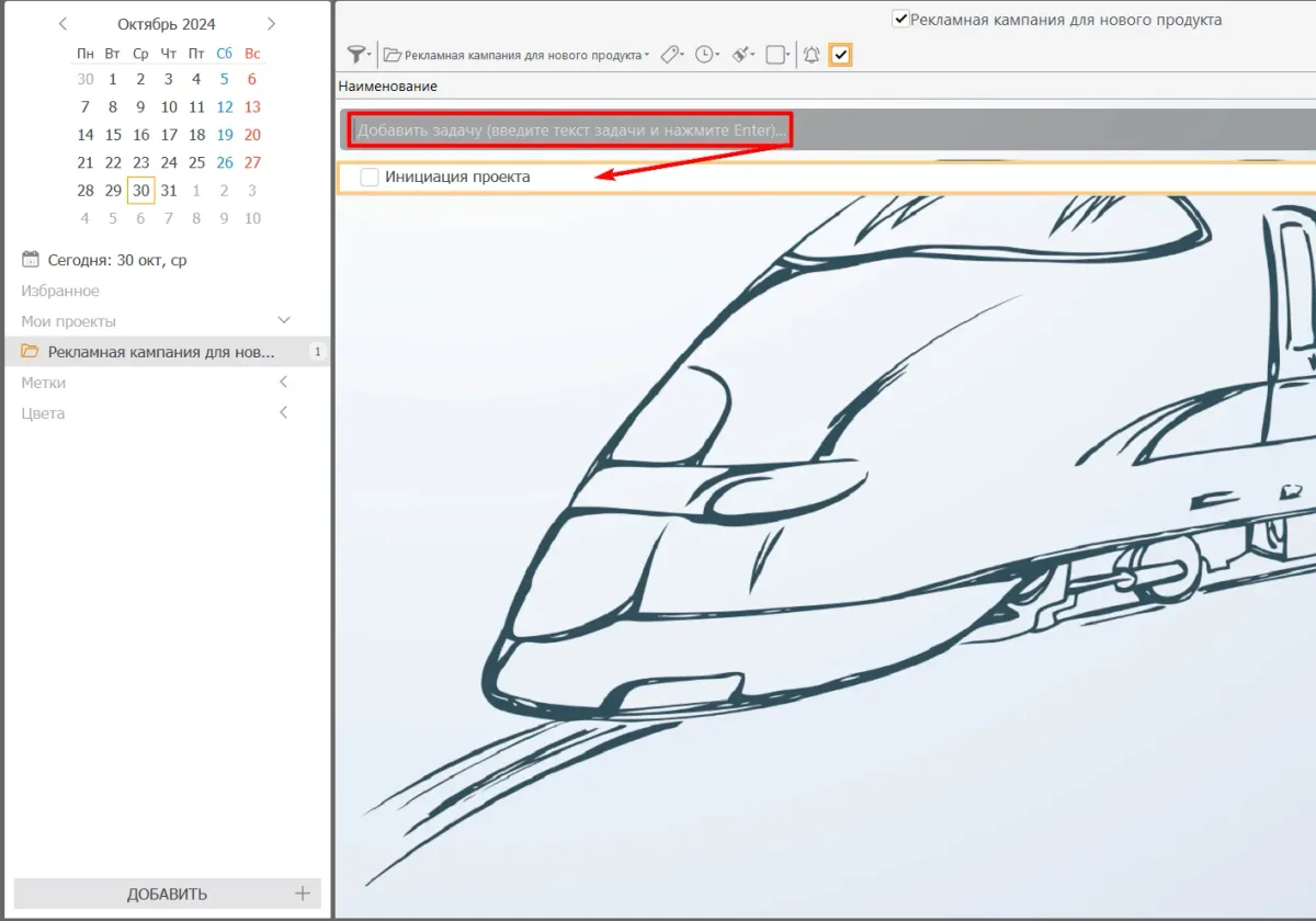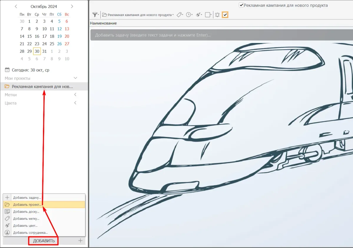 Шаг 1. Добавьте новый проект. Назовите его, например, «Рекламная кампания для нового продукта».