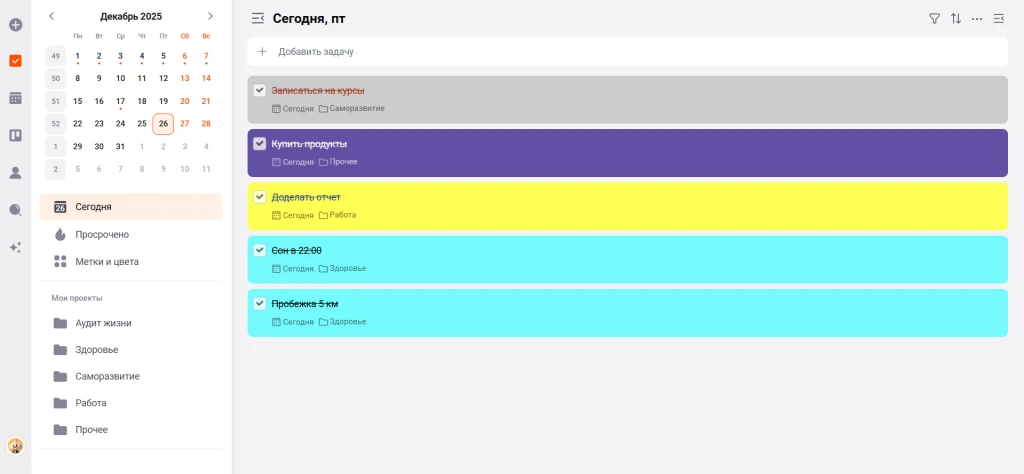 Совет. Используйте «Проекты» в ЛидерТаске, чтобы разделить рабочее и личное. Это поможет не смешивать разные сферы жизни и сохранять ментальное здоровье.