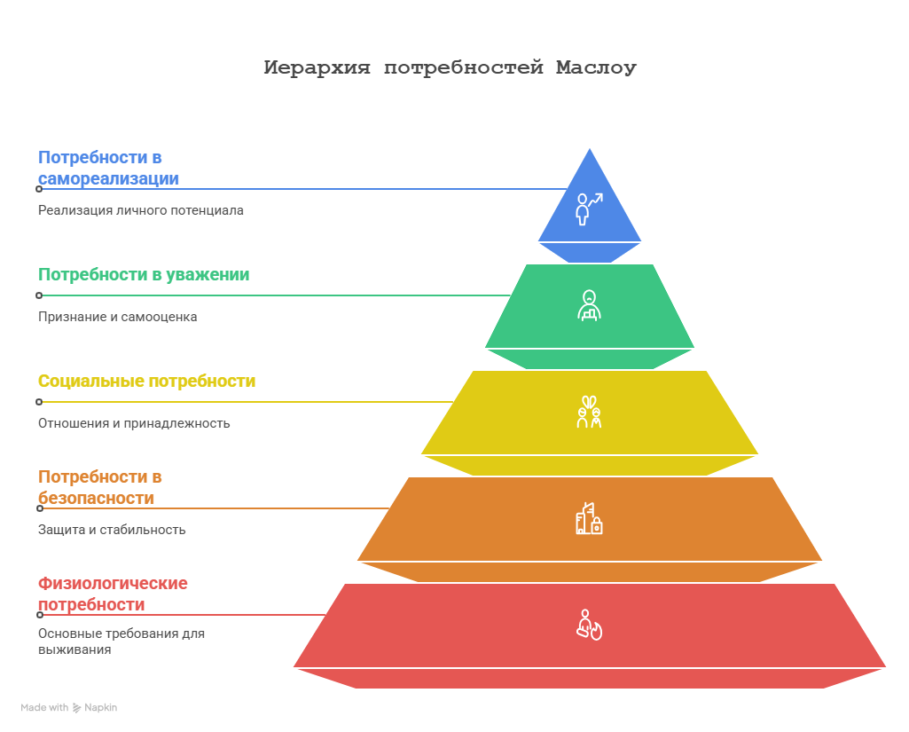 Чтобы навести порядок в делах и вернуть драйв, важно понять, как устроена пирамида потребностей человека. Эта модель — не просто картинка из учебника, а четкая система, объясняющая наше поведение в бизнесе и личной жизни.