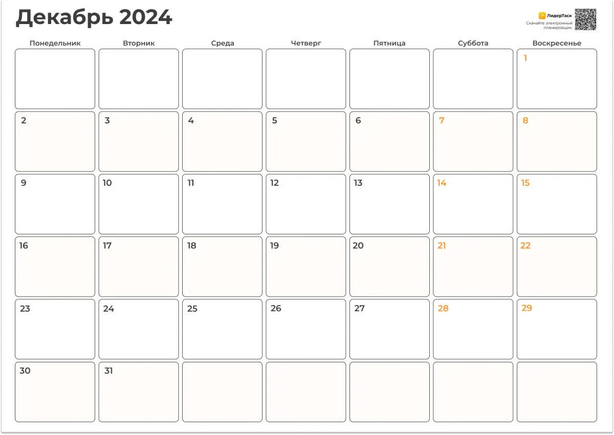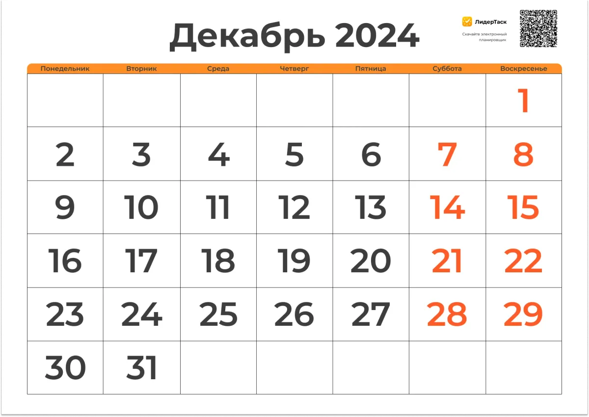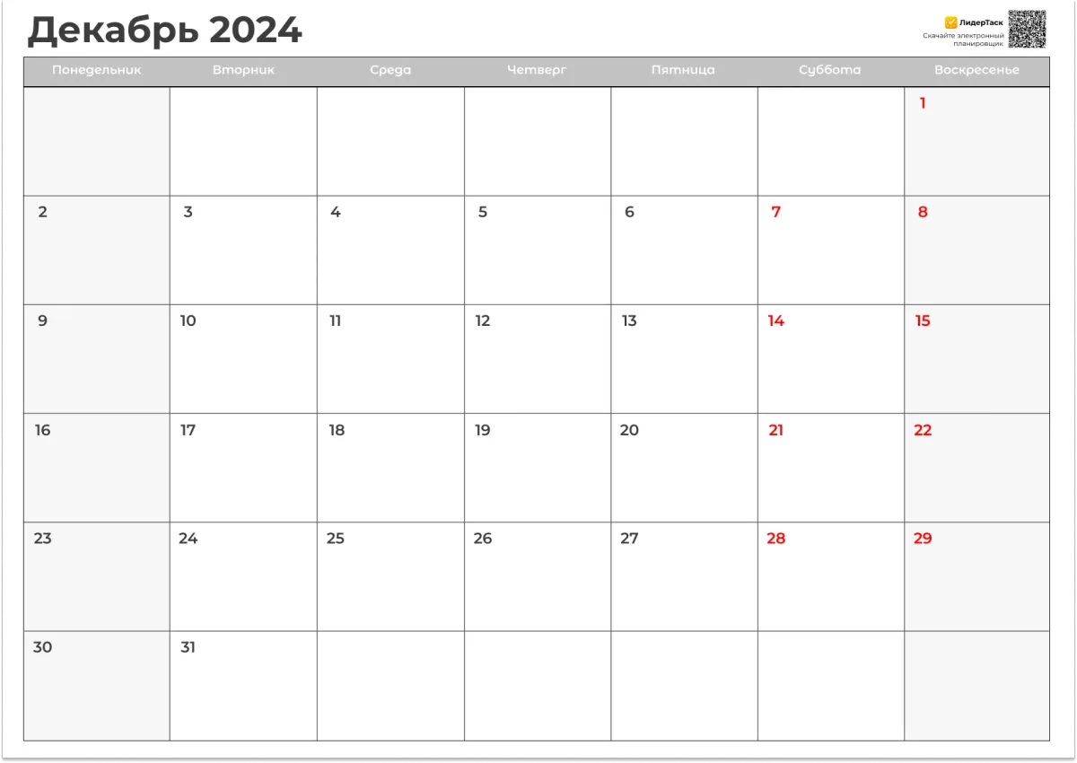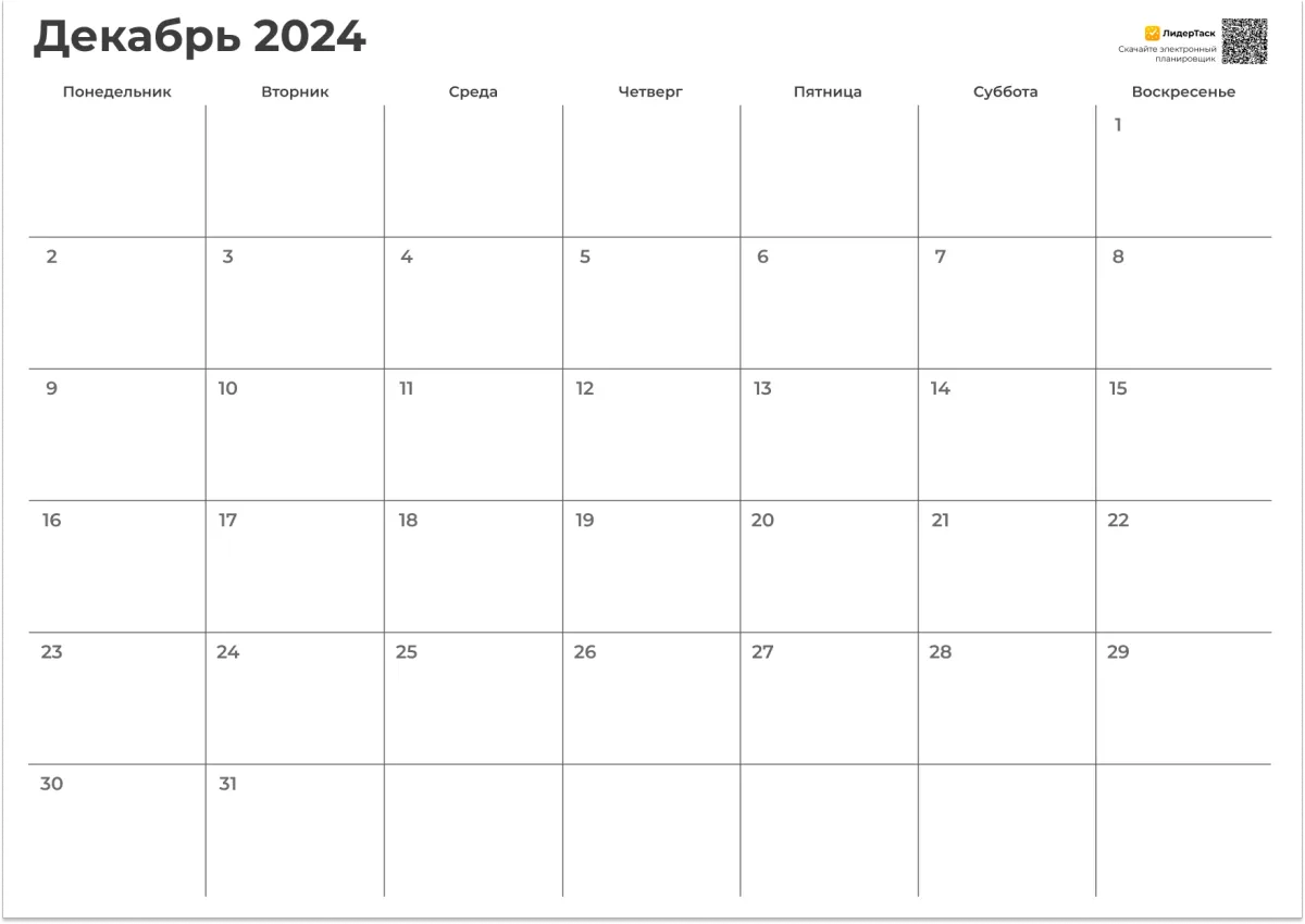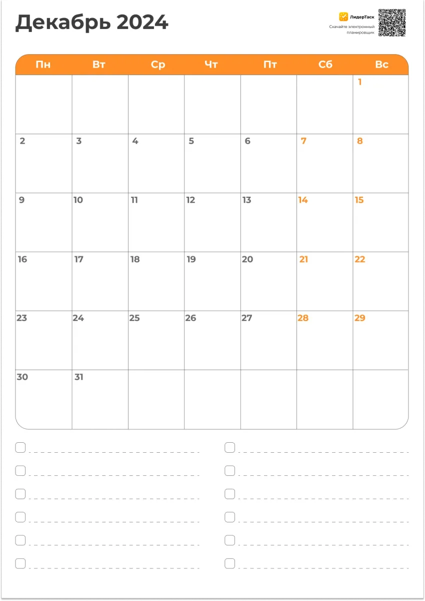 Планер на Декабрь 2024