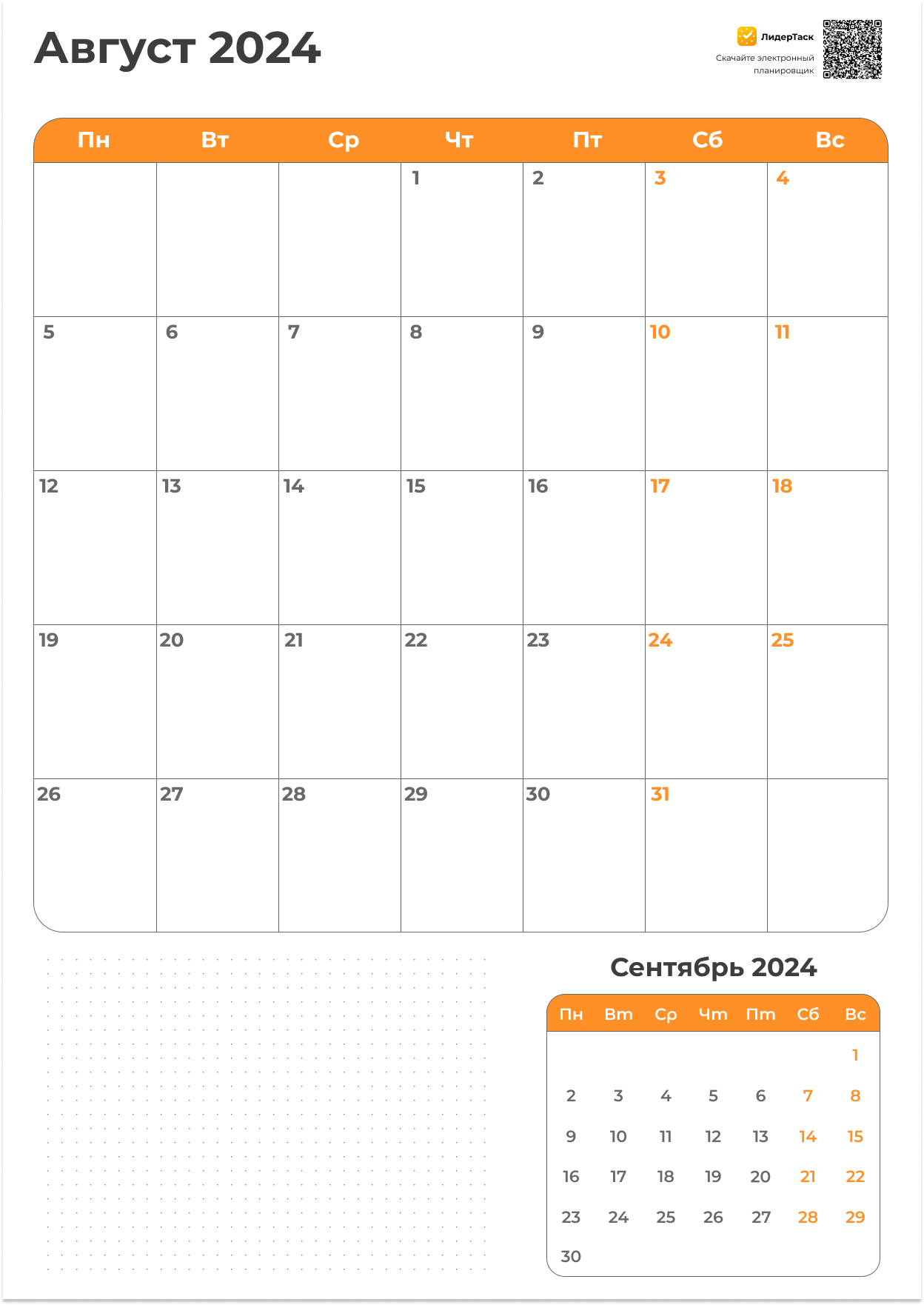 Для составления планов на месяц попробуйте бесплатное приложение планировщик ЛидерТаск. Составляйте списки дел, прикрепляйте файлы, отслеживайте привычки, разделяйте дела по проектам, делитесь задачами. Приложение можно использовать как на телефоне, так и на компьютере.