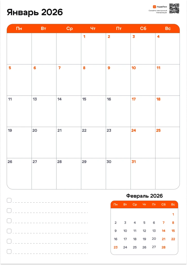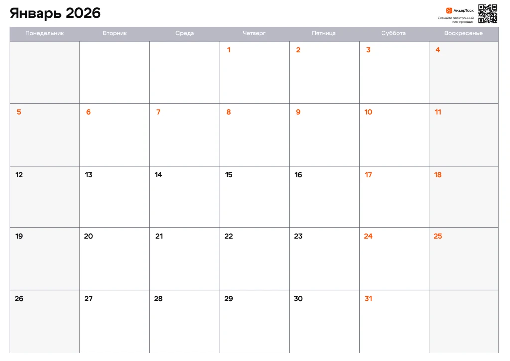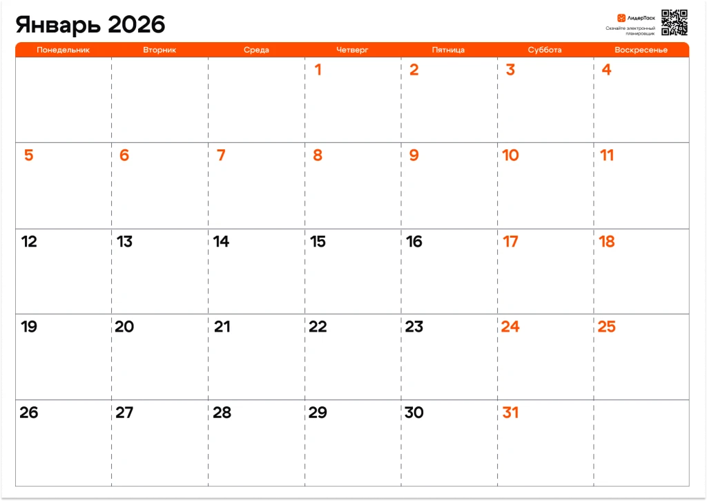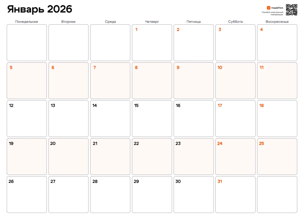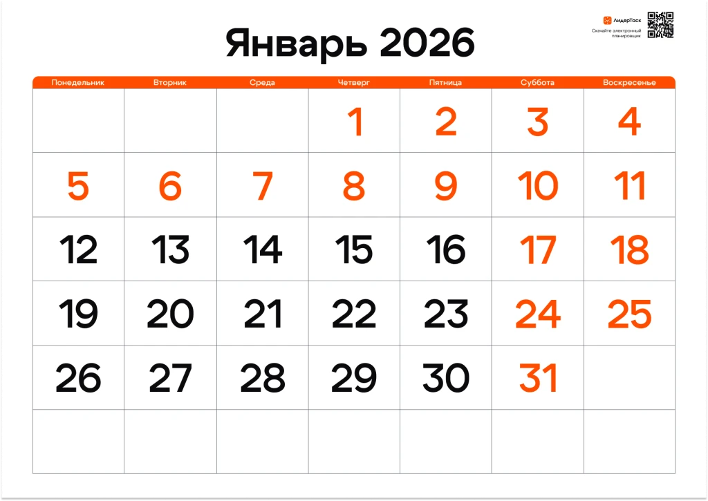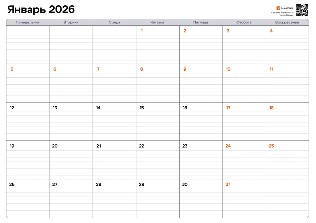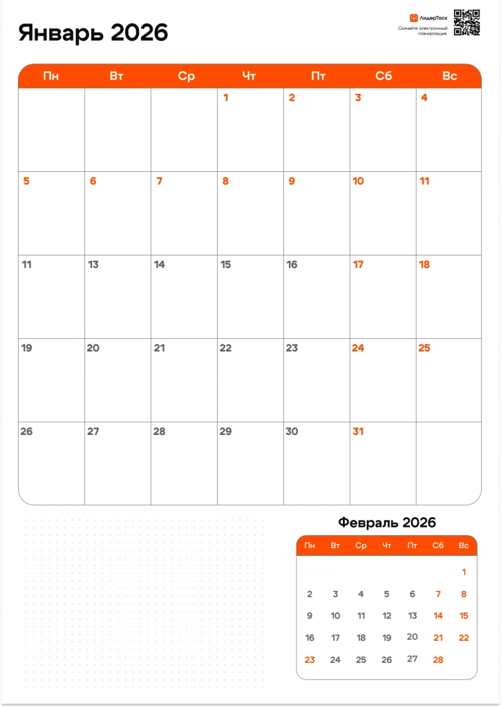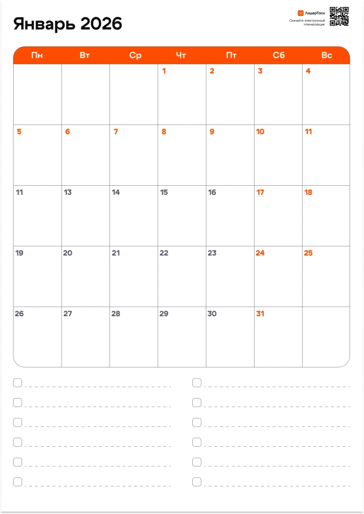 Хотите получить планер на весь 2026 год? Просто зарегистрируйтесь в ЛидерТаск, отправьте свой e-mail в нашу техподдержку в Telegram t.me/leadertask_support, и мы пришлём вам архив с планером на все 12 месяцев. Планируйте задачи и события на весь год, удобным для вас способом!