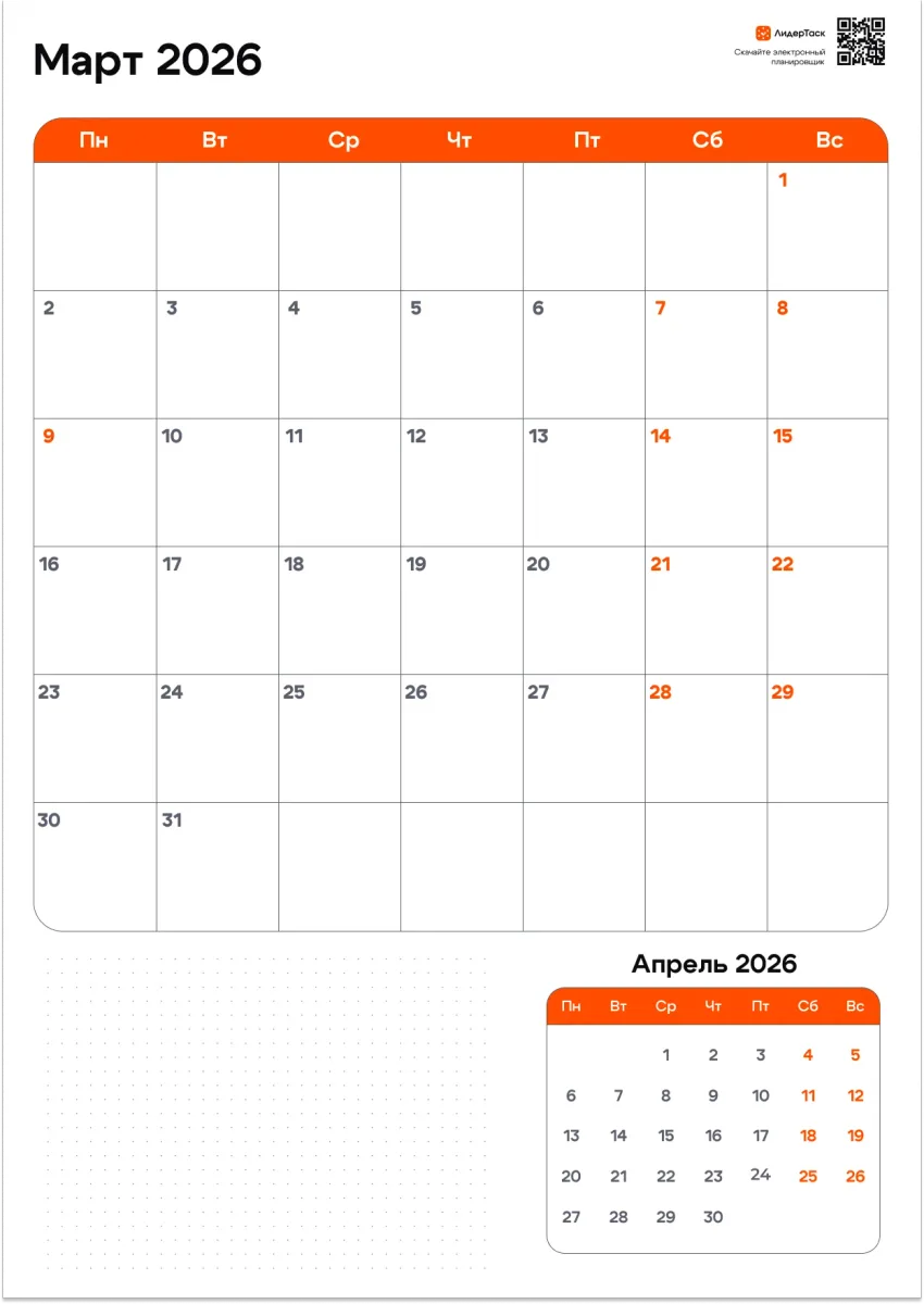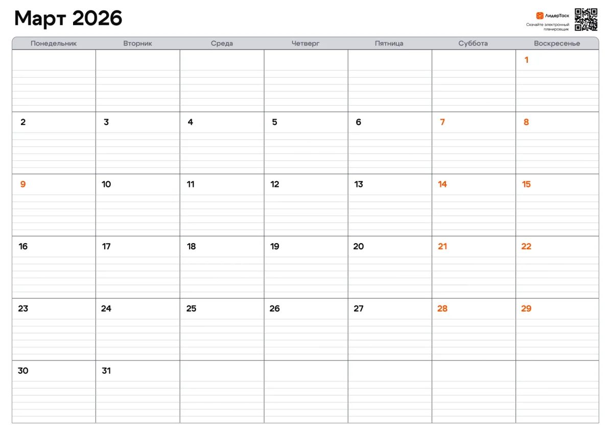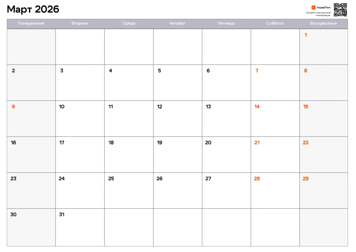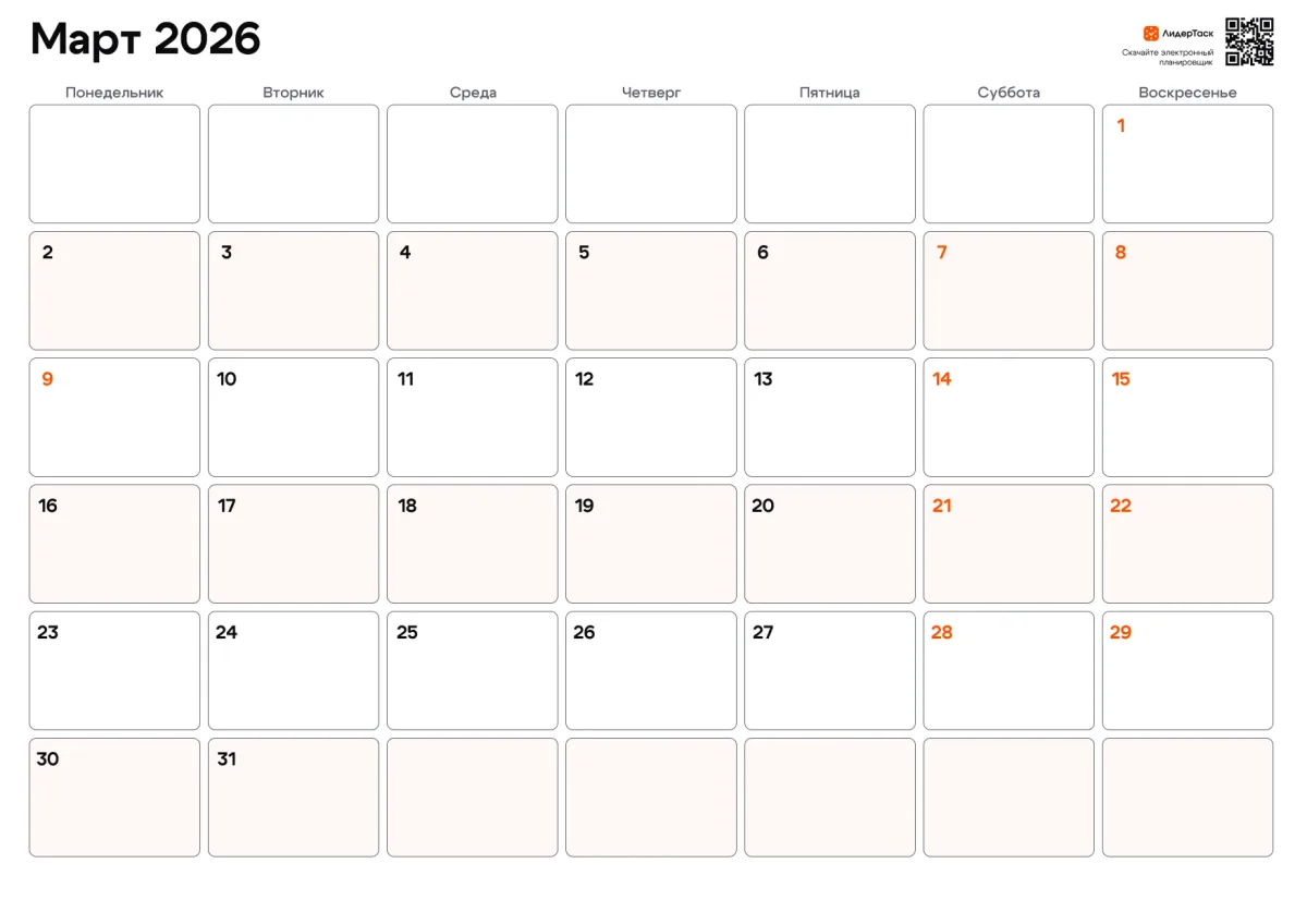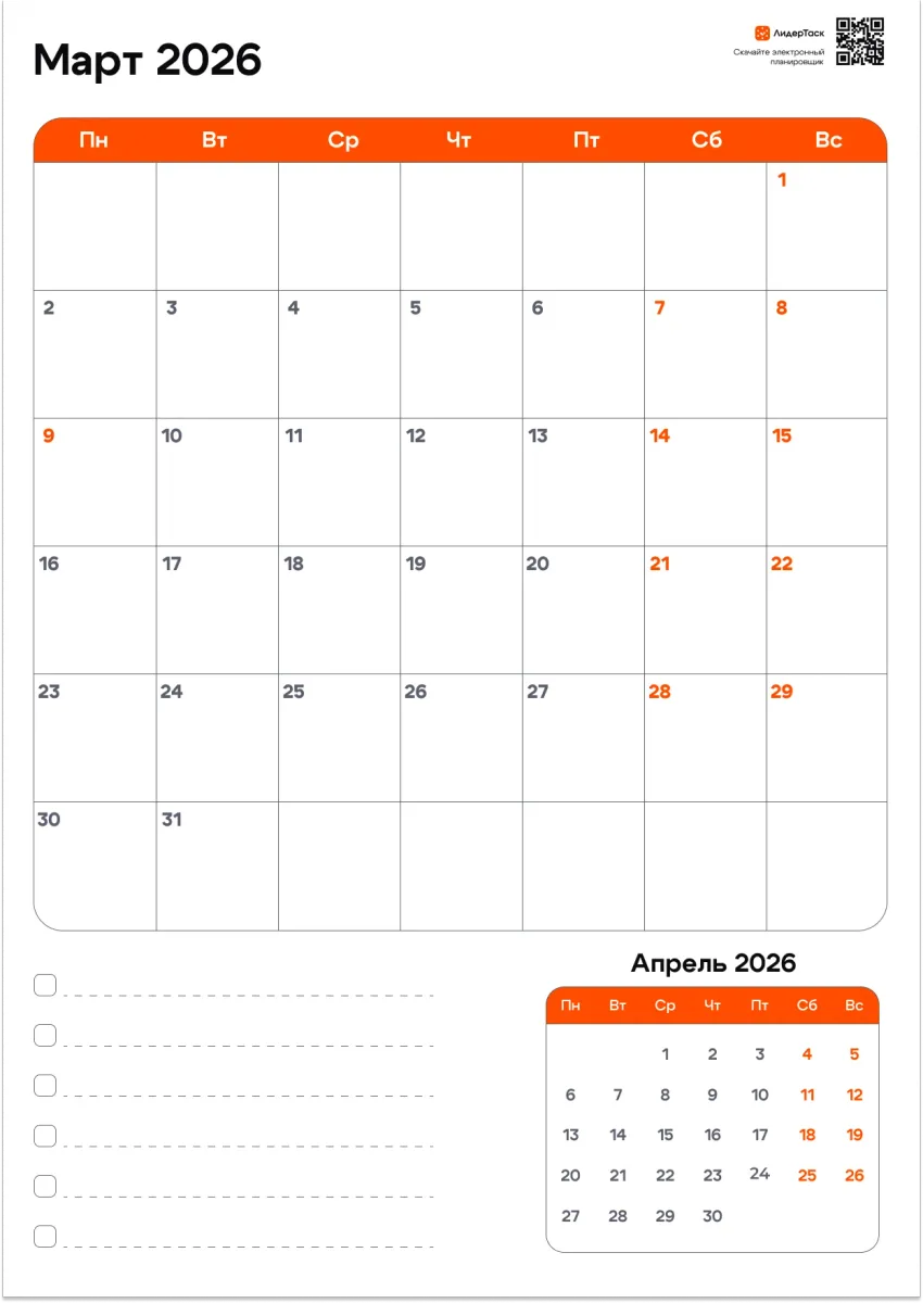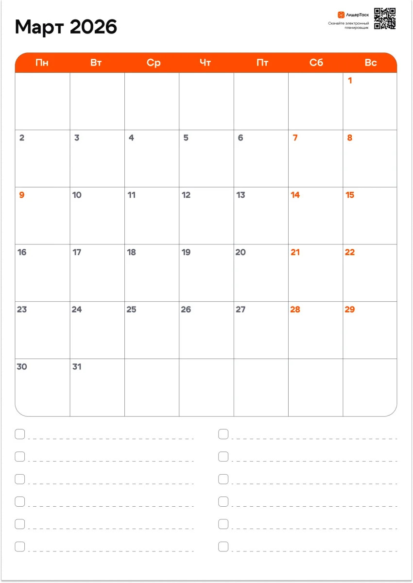 Организуй март 2026 удобнее, чем в бумажном планере