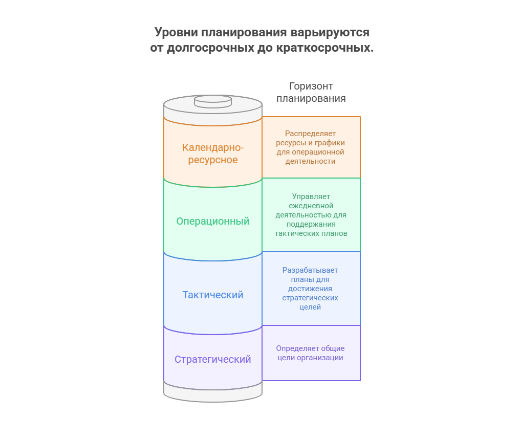 Разделение планирования на уровни помогает выстроить единую логику работы — от стратегии на несколько лет вперед до конкретного шага сотрудника сегодня.