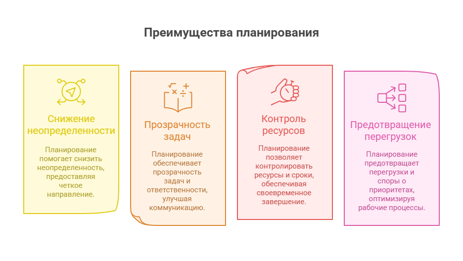 Планировать работу команды нужно, чтобы действовать осознанно, а не наугад. Понимание того, какие именно цели преследует планирование, позволяет превратить хаотичную деятельность организации в слаженный механизм достижения результатов.