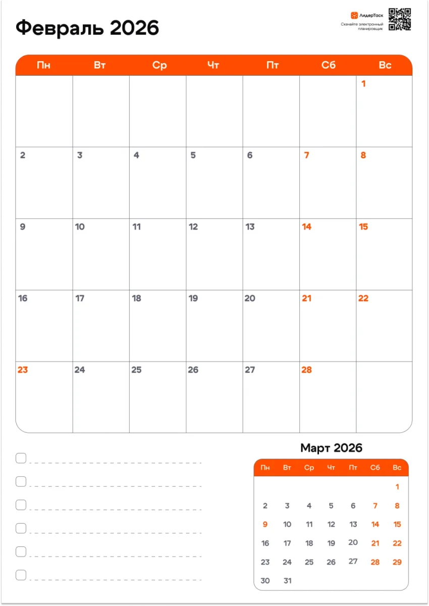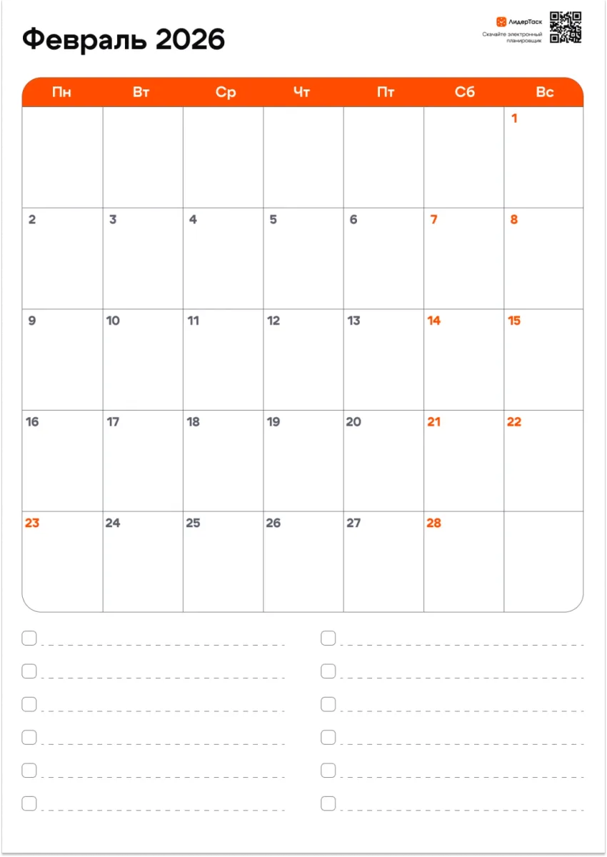 Организуй февраль 2026 удобнее, чем в бумажном планере