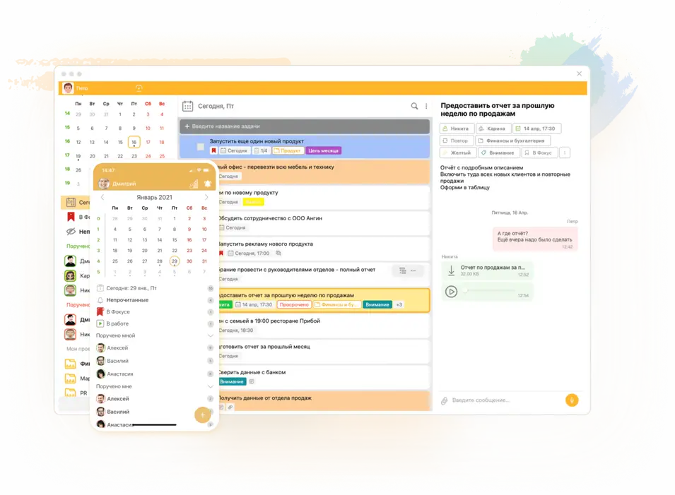 - Максимальная продуктивность – всё чётко структурировано, никакого хаоса, пропущенных задач и двойной работы.